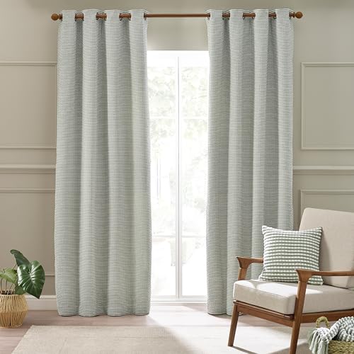 Catherine Lansfield Stab Stitch 66x72 Inch Lined Eyelet Curtains Two Panels Sage Green