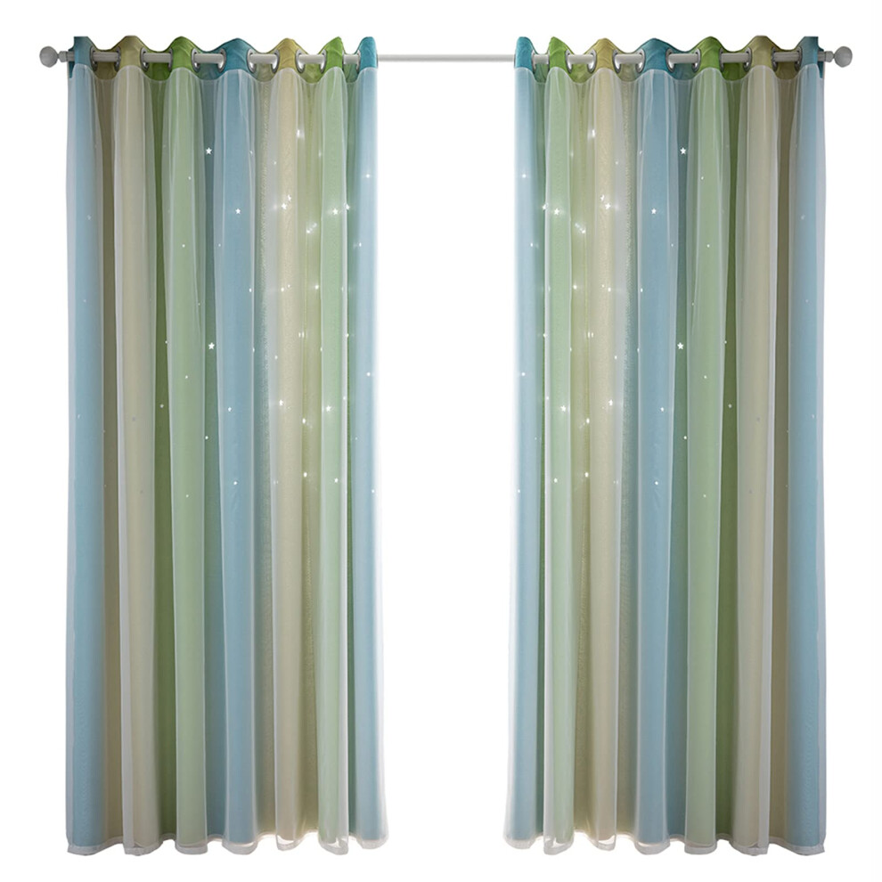 Star Curtains Hollow Star Yarn Gradient Curtains For Girls Bedroom Stitch Curtains Blue Ombre 40W x 52L