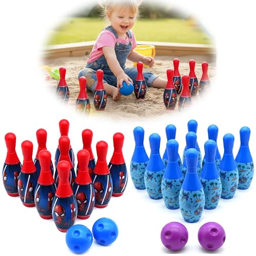 Mini Bowling Game Set – Spiderman and Disney Stitch – 20 Pins and 4 Balls – Indoor Outdoor Bowling Toy for Kids – Fun Gift for Boys and Girls