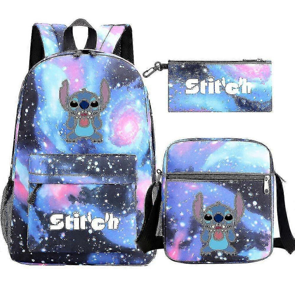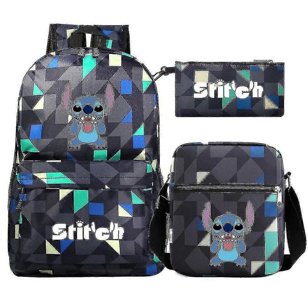 (A) Stitch Print Backpack Game Peripheral Anime Student Backpack Youth Travel Outdoor Backpack