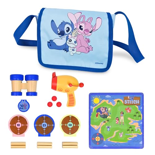 Disney Lilo & Stitch Adventure Bag Playset – Kids’ Target Game with Toy Blaster, Wooden Targets, Binoculars & Travel Bag – Fun Outdoor & Indoor Activity Set