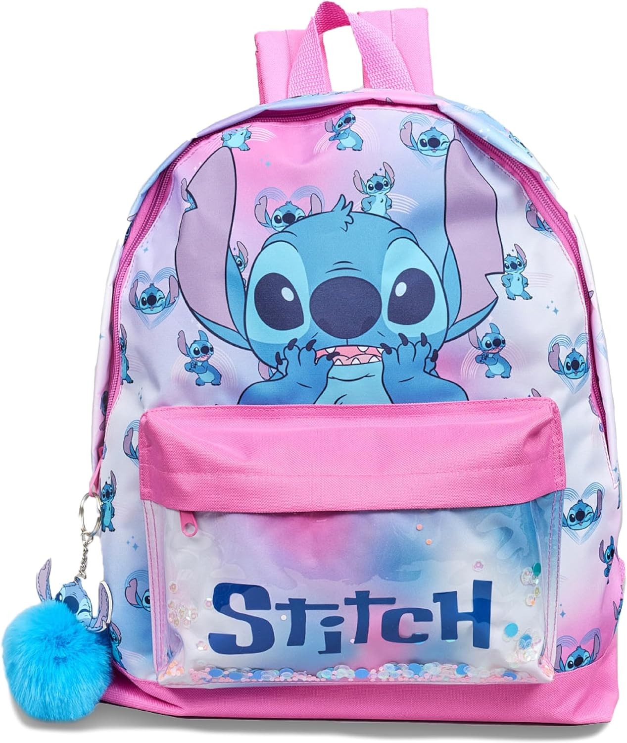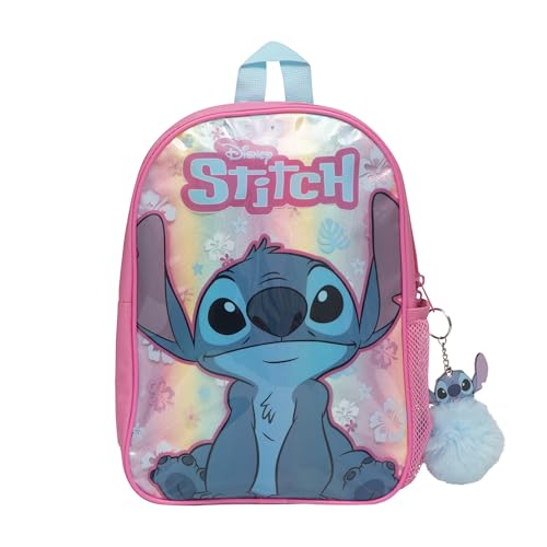 Disney Stitch Girls Backpack Kids Pom Pom Keyring Glitter Pocket School Bag Childrens Rucksack