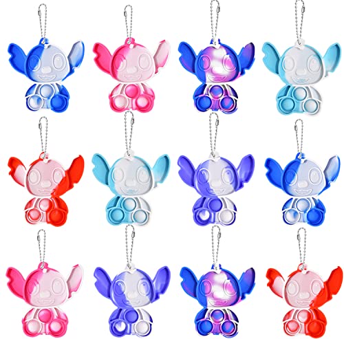 Yeefunjoy 12PCS Pop Keyring It Fidget Toys Pack Party Favors Bag Fillers for Kids, Stitch Mini Pop Fidget Toy Keychain Bubble Sensory Toy, Stress Relief Keyring Keychain for Girls Boys Kids Adults