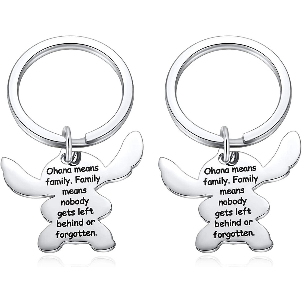 Stitch Keychain, Ohana Means Family Key Chain, Cartoon Stitch Key Ring - Family Means Nobody Gets Left Behind Or Forgotten Engraved Keyring Stitch Gif