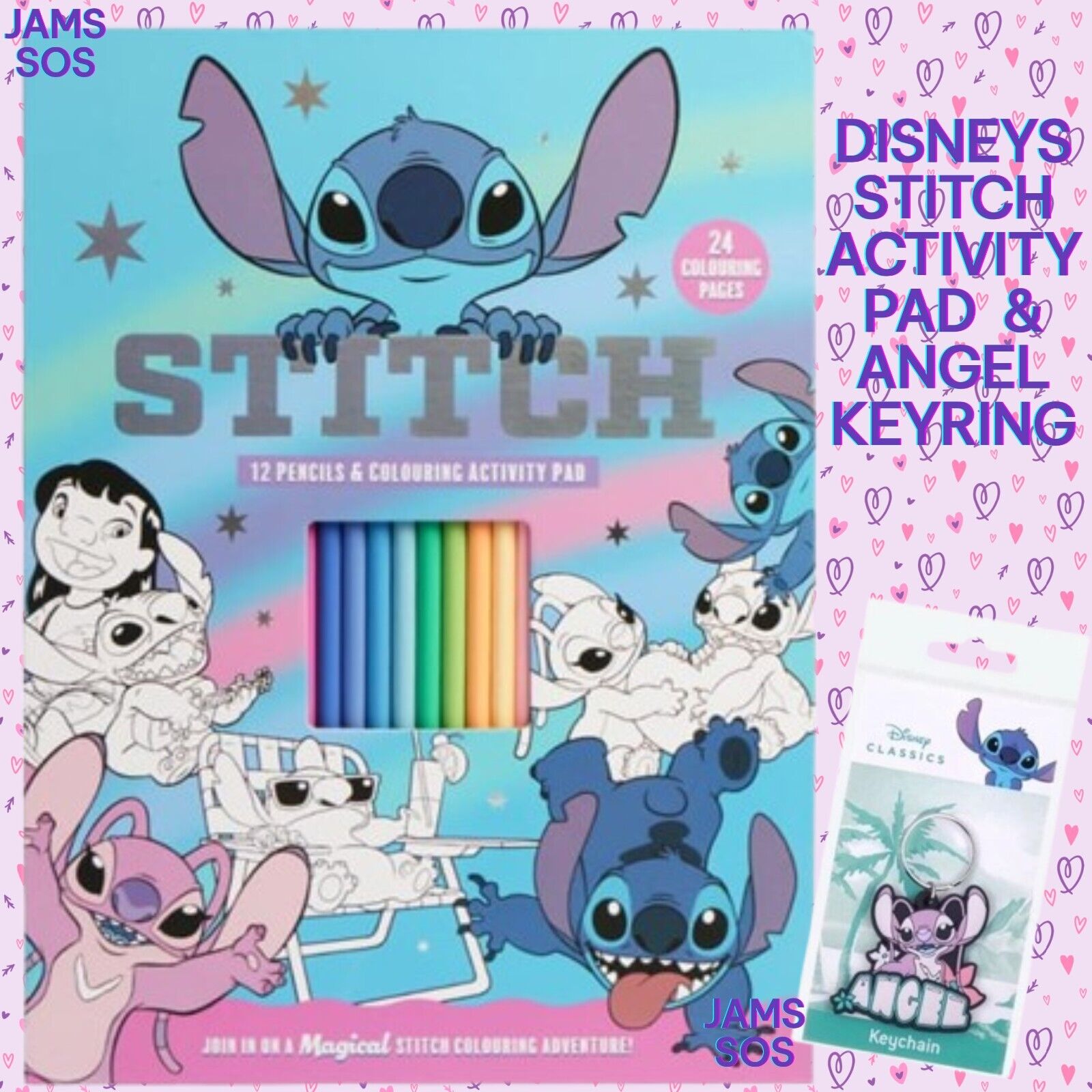 STITCH COLORING COLOURING Activity Pad & 12 Pencils & ANGEL KEYRING XMAS GIFT