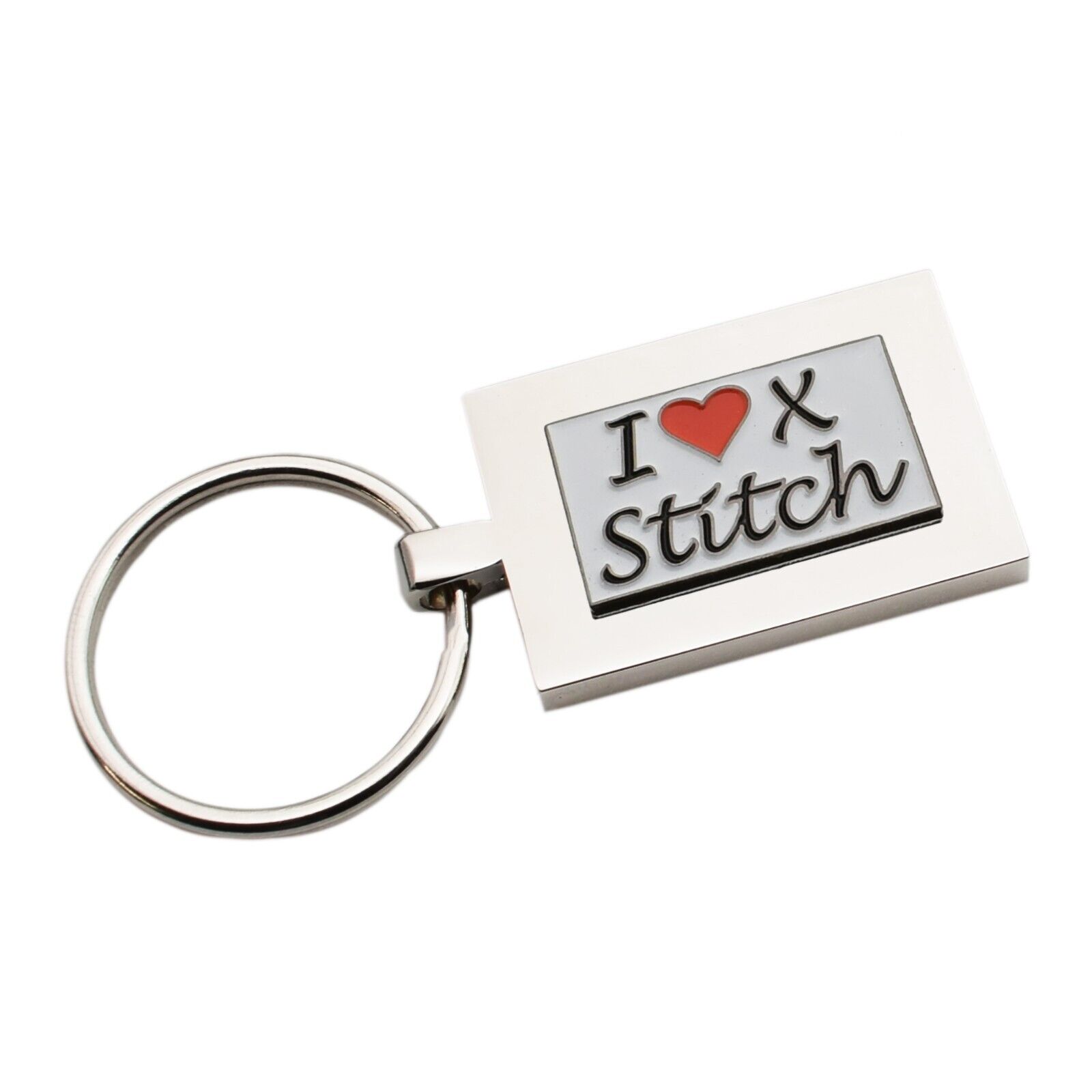 Personalised Engraved keyring with I Love Cross Stitch, Sewing Embroidery Design
