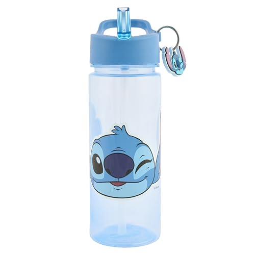 Disney Stitch and Angel 500ml Kids Water Bottles with Straw by Polar Gear - Lilo And Stitch Gifts For Girls - Back to School Supplies Girls Water Bottle - Stitch Water Bottle with Stitch Keyring Charm