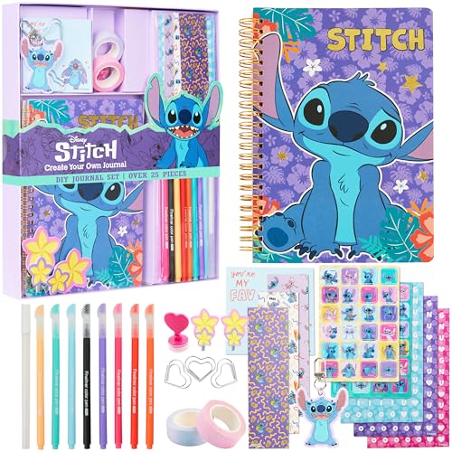 Disney Stitch DIY Journal Kit for Kids Teens A5 Diary Art Supplies Stickers Sticky Notes Keyring Coloured Pens Arts and Crafts Stitch Gifts