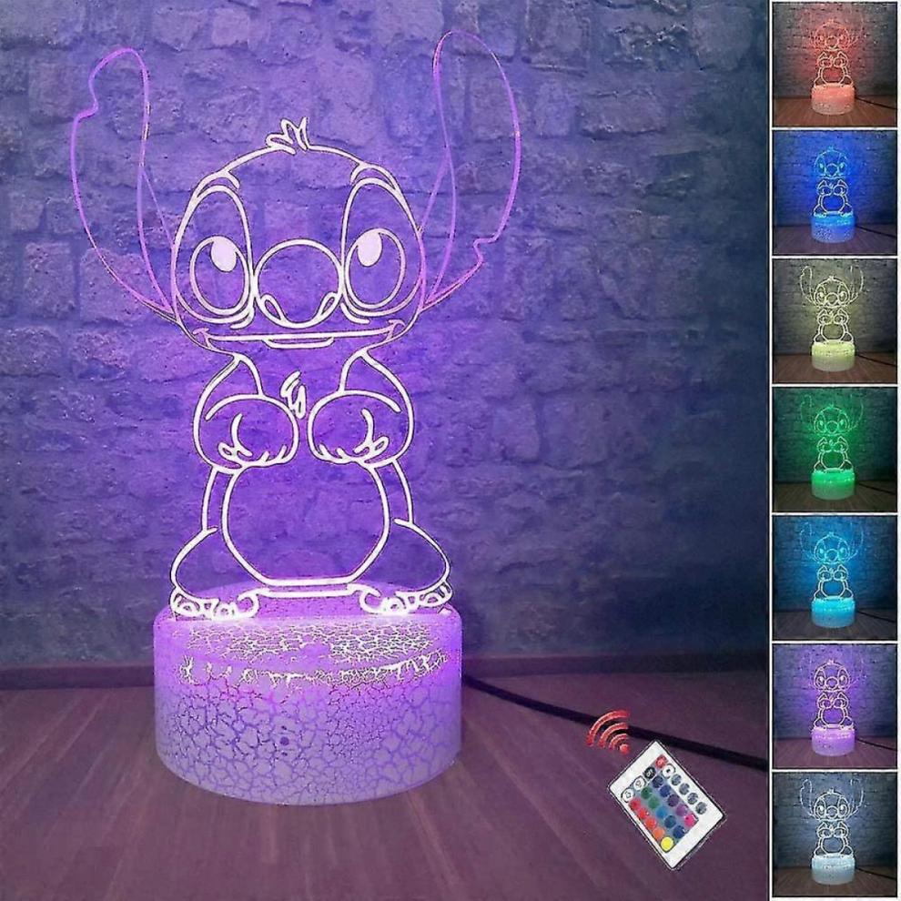 Hoofun Stitch Lamp: 3D Illusion Night Light with Touch & Remote Control, 16 Colors Anime Children's Lighting Desk Lamps, Stitch Merch Stuff Gifts for Girls Kids Room Decor Birthday Christmas Holiday