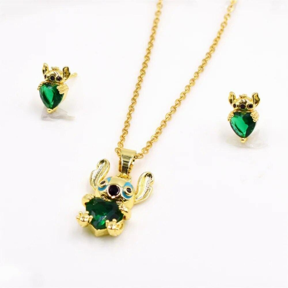 (Necklace 2) Whimsical Cartoon Stitch Sparkling Drip Oil Jewelry Set With Lovely Necklace Bracelet And Earrings For Fashionable Gift Giving