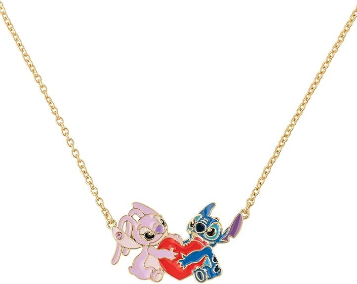 Disney Stitch & Angel Gold Plated Heart Pendant Necklace