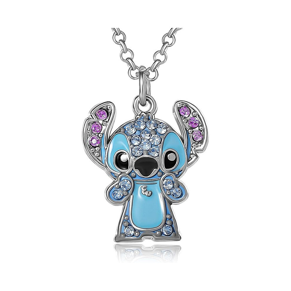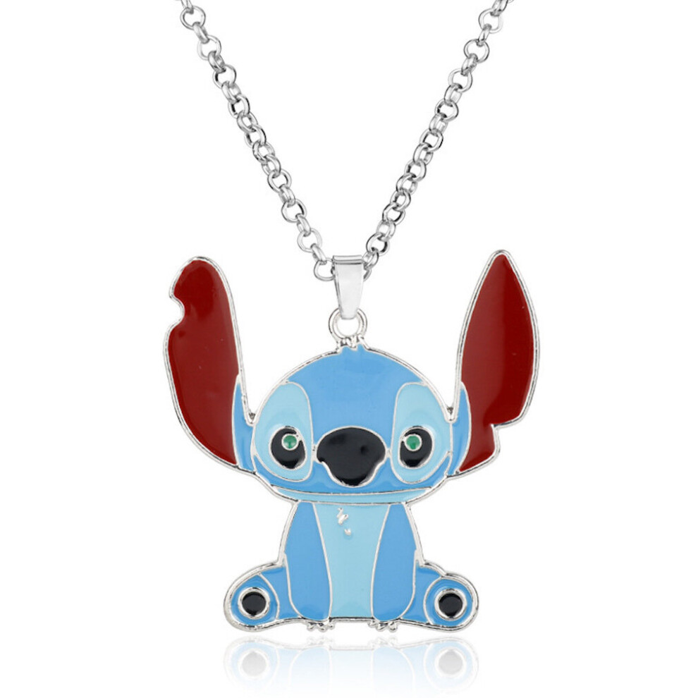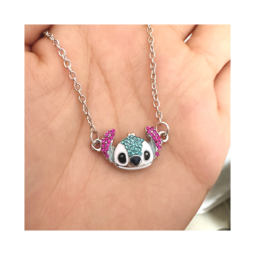 R8 - Stitch Themed Silver Plated Enamel Pendant Chain Necklace Ladies Gift
