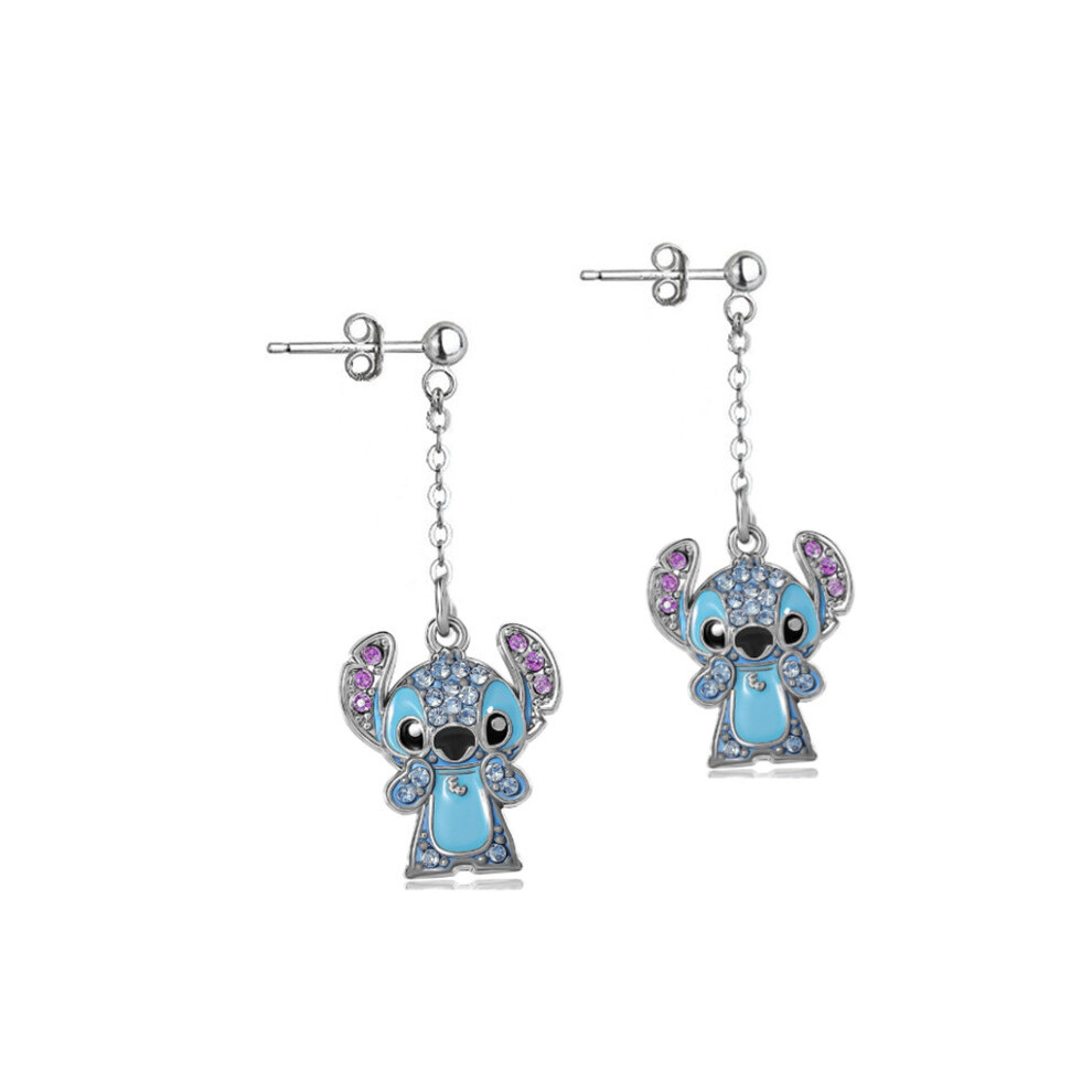 (Earring Stud) Modern Lilo Stitch Blue Bear Necklace Rhinestone Detailing Casual Office Looks