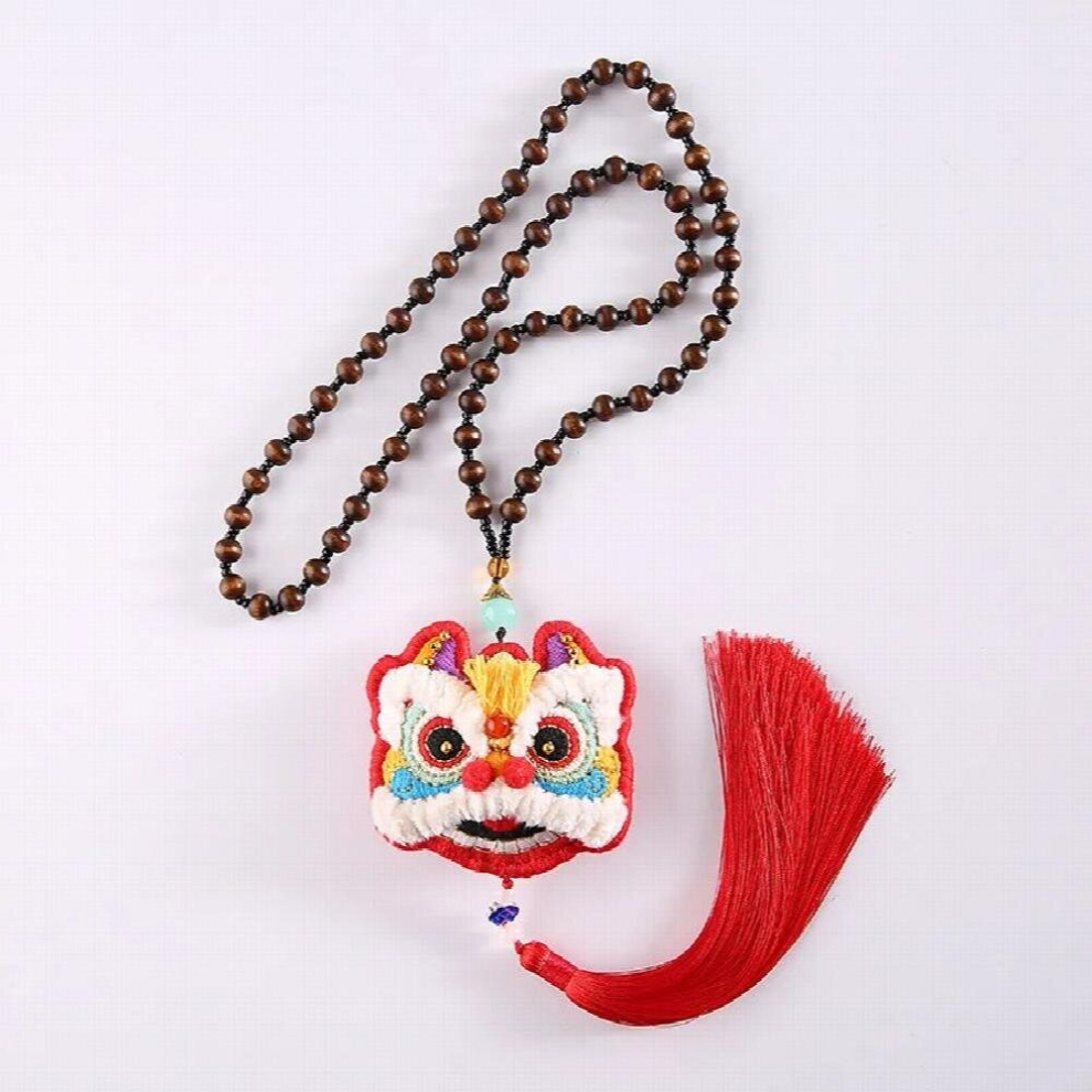 Dancing Lion Necklace DIY Embroidery Omamori Pendant Bags Women Necklaces Amulet Cross Stitch Talisman Needlework