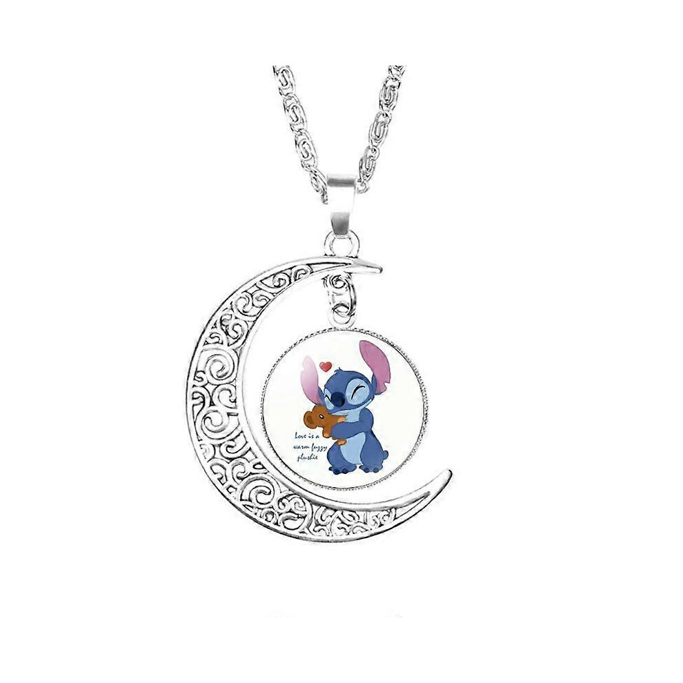 (As show, One size) Stylish Lilo and Stitch Moon Pendant Necklace Great for Young Girls