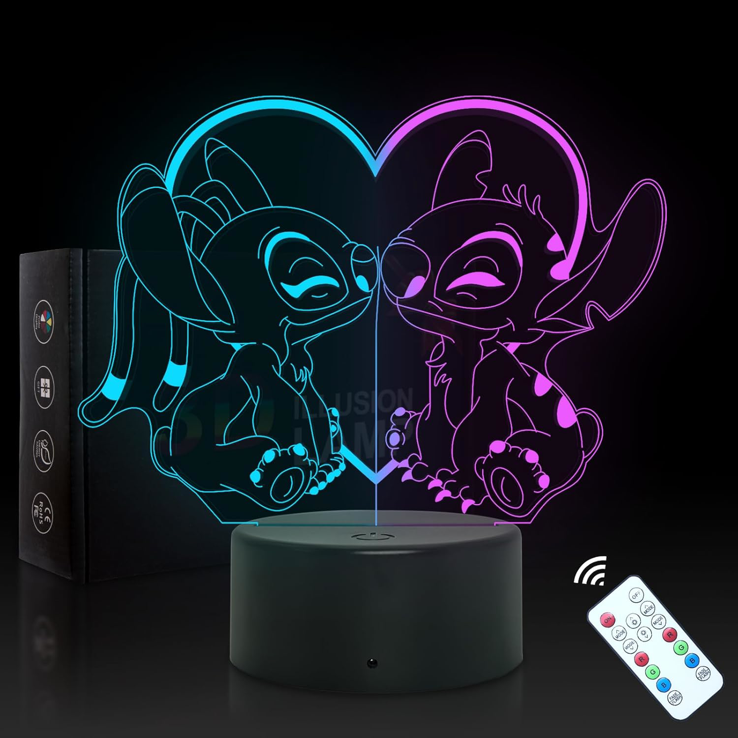 Stitch Night Light - 3D LED 16 Color Changing Touch Lamp with Remote Control BN