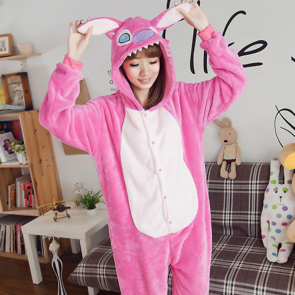 (Adults, M) Unisex Kids Adults Pink Stitch Pajamas Cosplay Costumes Onesie Kigurumi Jumpsuits Sleepwears