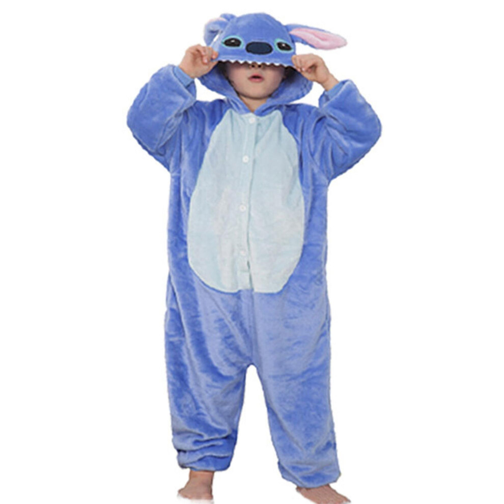 FunnyCos Unisex Kids Hooded Animal Onesie Supersoft Flannel Costume Pajamas Fancy Dress Playsuit Jumpsuit Blue Stitch 140