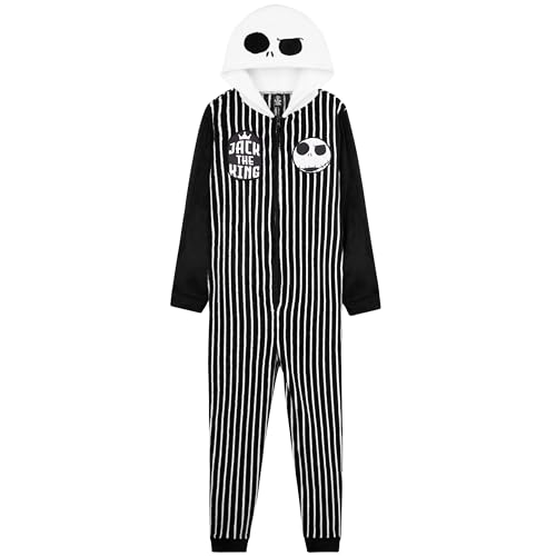 Disney Stitch Girls Fleece Onesie with Hood, Cosy Loungewear Pyjamas Sleepsuit for Kids Teenagers, Stitch Gifts for Kids (Black/White Jack, 7-8 Years)
