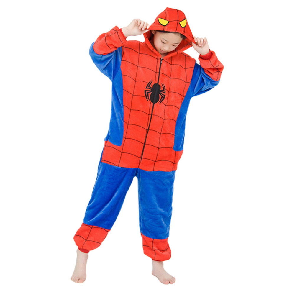 (7-8 Years, Red-Spiderman) Kids Boys Girls Spiderman/stitch Jumpsuit Hooded Onesie Sleepwear Pajamas