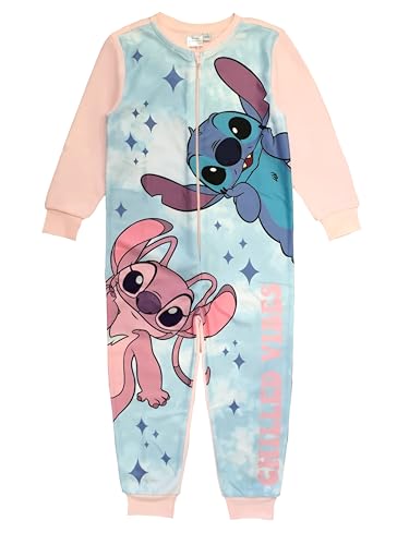 Disney Lilo & Stitch Girls Fleece Onesie – Stitch & Angel All-in-One Pyjamas, Zip Front Kids Cosy Loungewear Sleepsuit, Blue/Pink, Age 11-12 Years