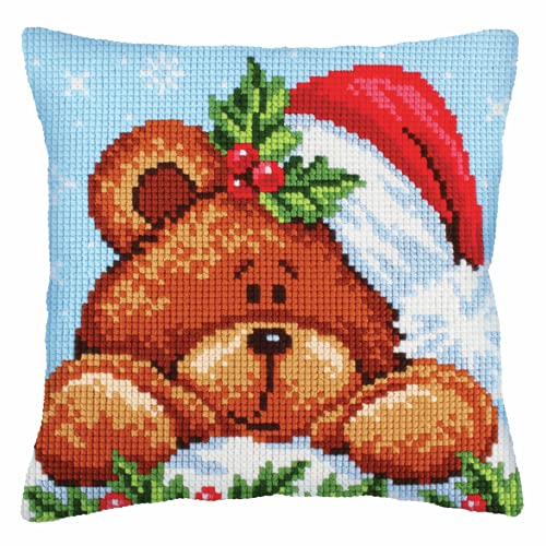 Collection d'Art 5240 Christmas with a Teddy Bear Cross Stitch Cushion, Cotton, Multi-Colour, 40 x 40 cm