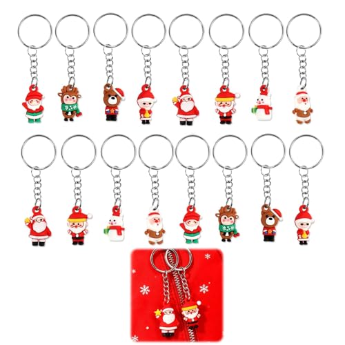 GodtKowty Festive 3D Christmas Keyrings Set - 16-Piece Cartoon Keychain Collection Featuring Santa, Reindeer, Snowman, and Christmas Tree - Holiday Party Favors and Stocking Fillers for Kids