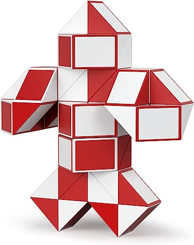 ROXENDA Magic Snake with 60 Segments, Magic Cube Twist Puzzle - 3D Puzzles Games Fidget Snake Toy Christmas Stocking Fillers for Kids and Adults - 1 Pack (Red)
