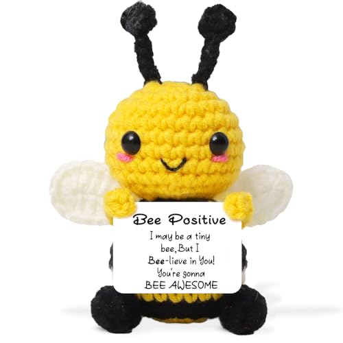 Positive Bee, Gifts for Women Men, Stocking Fillers for Kids, Cute Funny Crochet Doll, Positive Crochet Animals, Pocket Hug