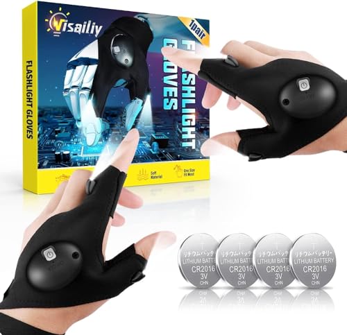 Visailiy Gifts for Men, Gadgets for Men Gifts for Dad, LED Gloves with Lights, Gloves Fishing Accessories, Flashlight Gloves for Christmas Stocking Fillers for Men, Unique Birthday Gifts