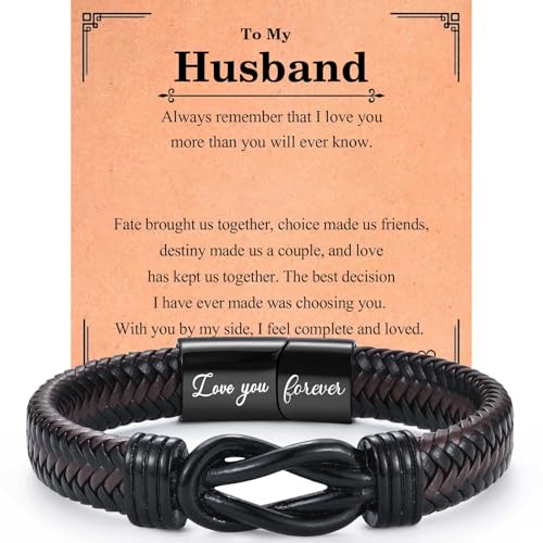 VOSAP Gifts for Husband, Infinity Knot Leather Bracelet for Men, Husband Gift from Wife, Christmas Birthday Anniversary Valentines Gifts for Him, Stocking Fillers for Men