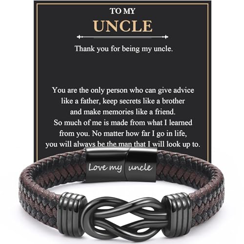EYQV Uncle Gifts, Engraved Leather Bracelet for Uncle from Niece Nephew, Mens Gifts for Fathers Day Christmas Birthday, Stocking Fillers for Men