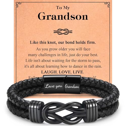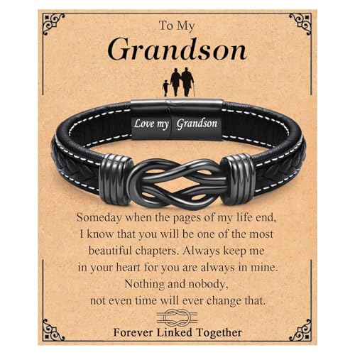 VOSAP Gifts for Grandson, Infinity Knot Leather Bracelet for Men Boys, Grandson Gift from Grandparents, Christmas Birthday Graduation Valentines Gifts, Stocking Fillers for Men Boys
