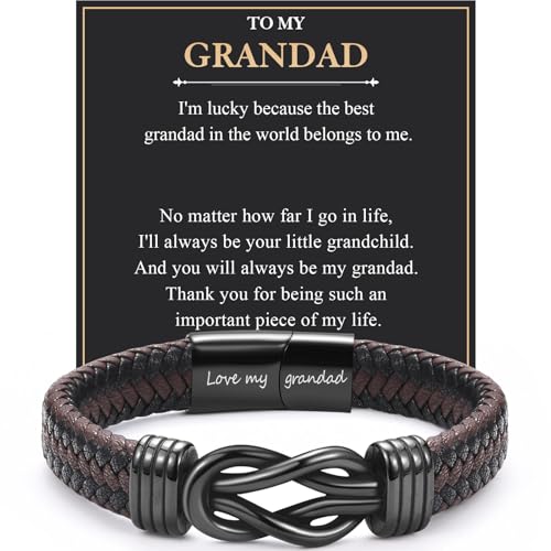 EYQV Grandad Gifts, Engraved Leather Bracelet from Grandchildren, Grandpa Gifts for Christmas Birthday Fathers Day, Stocking Fillers for Men