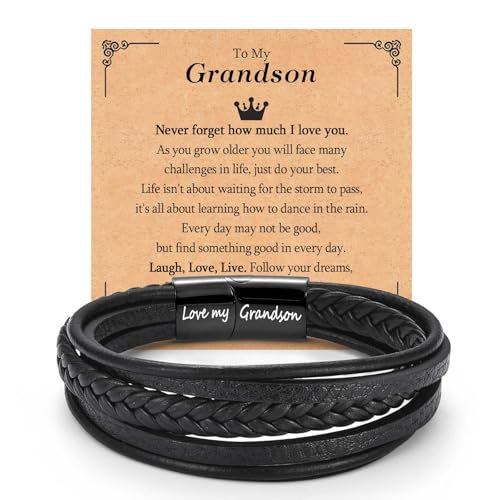 TEVOP Grandson Gifts, Grandson Bracelet from Grandparents, Teenage Boys Presents for Christmas Birthday, Graduation Gifts for Him, Christmas Stocking Fillers for Men