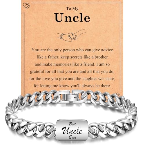 EYQV Uncle Gifts, Engraved Bracelet Uncle Gift from Niece Nephew, Best Fathers Day Birthday Christmas Gifts Stocking Fillers for Men