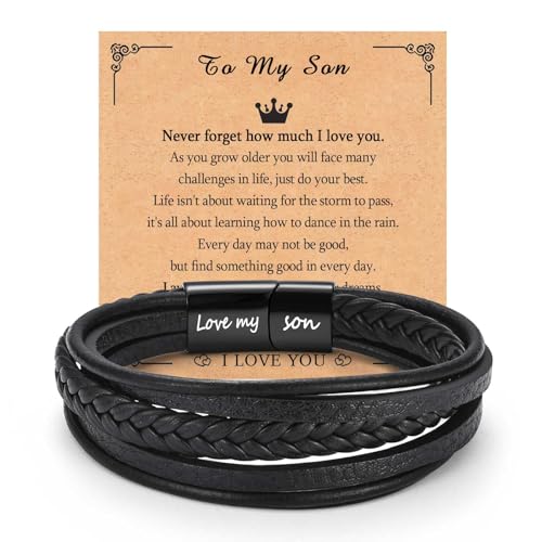 EPVID Son Gifts, Leather Bracelet for Son from Mum Dad, Perfect Christmas Valentiens Day Birthday Graduation Gifts for Him, Stocking Fillers for Men Teenage Boys
