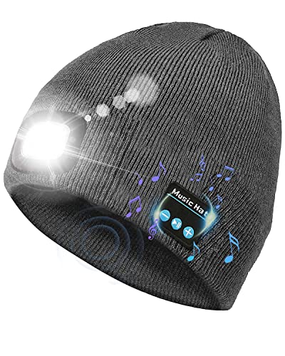 Victoper Gifts for Men Bluetooth Beanie Hat with Light Upgraded V5.0 Bluetooth Hat with Torch Built in for Winter Running Wireless Music Beanie USB Rechargeable Gifts Stocking Fillers for Men Grey