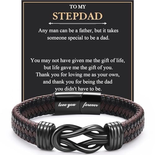 EYQV Step Dad Gifts, Engraved Leather Bracelet for Step Dad from Daughter Son, Stepdad Gifts for Fathers Day Christmas Birthday, Stocking Fillers for Men