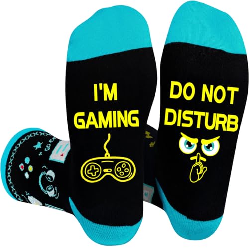 Funny Socks, DO NOT DISTURB I'M GAMING Gamer Xmas Gifts for Men Who Have Everything, Novelty Birthday Valentines Gifts Christmas Stocking Fillers for Teenage Boys Men Gaming Socks 9-12 uk