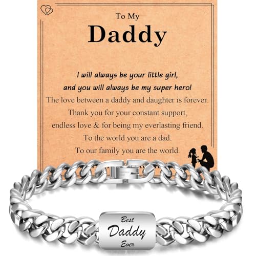 EYQV Daddy Fathers Day Gift from Daughter, Engraved Bracelet Daddy Gifts, Best Christmas Fathers Day Birthday Gifts Stocking Fillers for Men