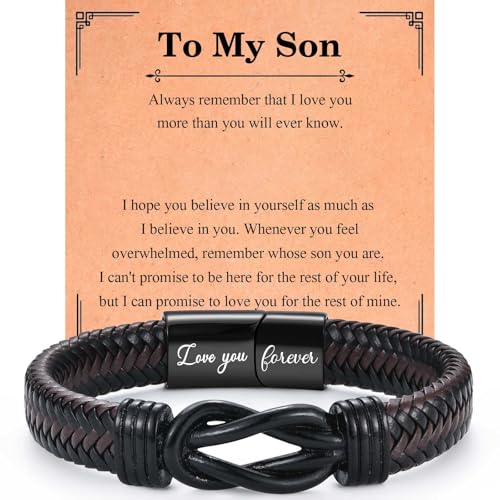 VOSAP Gifts for Son, Infinity Knot Leather Bracelet for Men Boys, Son Gift from Dad Mum, Christmas Birthday Graduation Valentines Gifts, Stocking Fillers for Men Boys