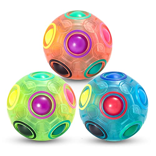 Vdealen Magic Rainbow Puzzle Ball- Fidget Ball 3D Puzzle Stress Reliever Brain Teaser Travel Toy- Birthday Party Easter Christmas Stocking Fillers Gift Toy for Kids Teens Adults- 3 Pack