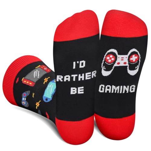 I'd Rather Be Gaming Socks - Fun Gamer Socks for Men, Women & Teens - Novelty Gifts for Dad, Husband - Game Lovers, Valentines, Stocking Fillers