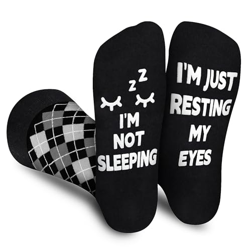 AGRIMONY Funny Sleeping Socks for Men Women Teens Boys - I’m Not Sleeping,Just Resting My Eye Socks Fathers Novelty Gifts for Dad Husband - Funky Crazy Sock Silly Christmas Stocking Fillers