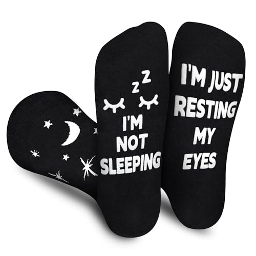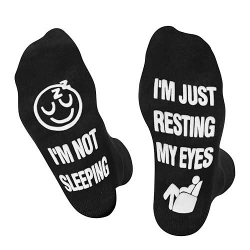 AGRIMONY Funny Sleeping Socks for Men, Women, Teens, Boys - I'm Not Sleeping, Just Resting My Eyes - Fathers Day Novelty Gifts for Dad, Husband - Funky Crazy Silly Christmas Stocking Fillers