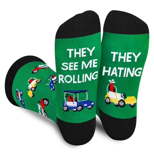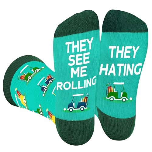 AGRIMONY Funny Golf Socks for Men Teens - THEY SEE ME ROLLING Socks - Fathers Day Novelty Gifts for Dad Husband Brother Crazy Sock-Valentines Birthday Fun Gifts Ideas Christmas Stocking Fillers