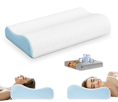 Hapiclody Cervical Pillow for Neck Pain, Memory Foam Pillows Orthopedic Pillow for Shoulder Pain Ergonomic Head Neck Support Pillow for Side/Back/Stomach Sleepers with Cooling Removable Cover