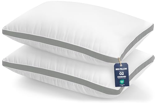 Utopia Bedding Bed Pillows for Sleeping Standard Size (White), Set of 2, Cooling Hotel Quality, Gusseted Pillow for Back, Stomach or Side Sleepers