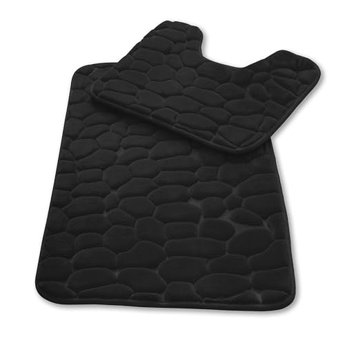 GC GAVENO CAVAILIA Pebble Stone Bath Mat Non Slip | 2Piece Memory Foam Bath Mat Set Washable Rug Super Absorbent Shower Pedestal Mat | Quick Dry Bathroom Toilet Mat Sets BathMat, Black